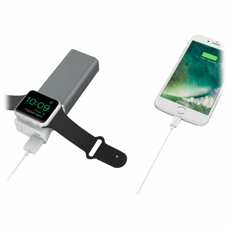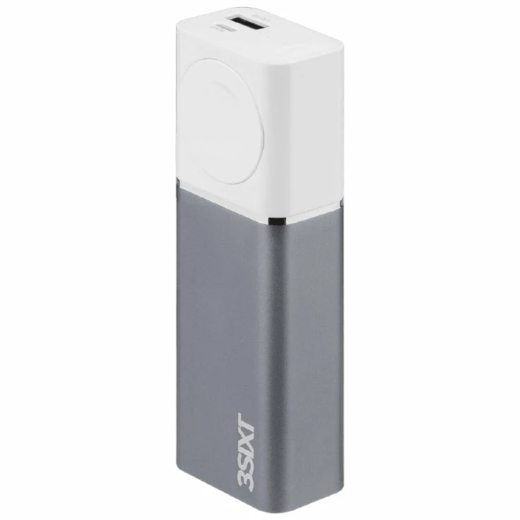 Enjoy extended freedom to charge your Apple Watch and other devices on-the-go quickly and easily with the 3SIXT Jetpak Apple Watch Dual Power Bank! This charger is specially designed for apple watches- it’s compatible with 1st gen as well as series 1-4 and even most smartphone and tablet devices. Apple watches are charged wirelessly- you just set the watch on the magnetic puck and it will connect and charge automatically! You can get up to 2 device charges, and an LED indicator shows your charging progress. Includes a USB-A to Micro USB charge cable and operating instructions.