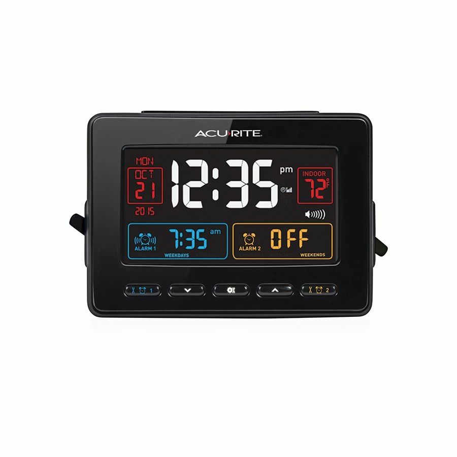 This Alarm Clock Weather Station Combo from AcuRite is packed with tons of features to prepare you for your day! It uses an outdoor weather sensor to provide you with basic forecasting that includes temperature, humidity, wind, and rain. The atomic clock is radio controlled, offering split second accuracy. The clock also has 2 easy to use alarms and features alarm volume control and a USB charging port.