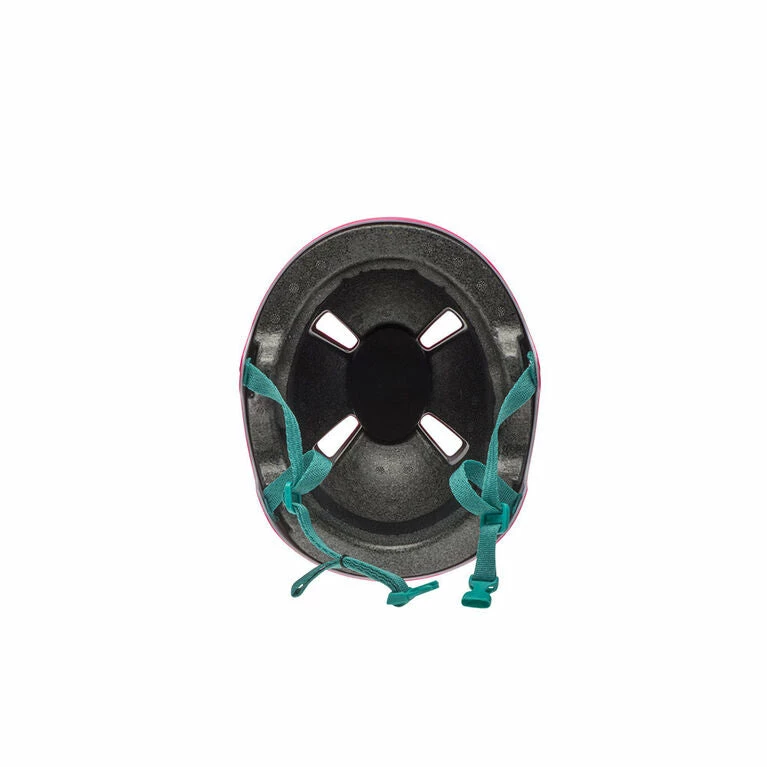 a pink gloss outer shell with an easily adjustable side-squeeze buckle.