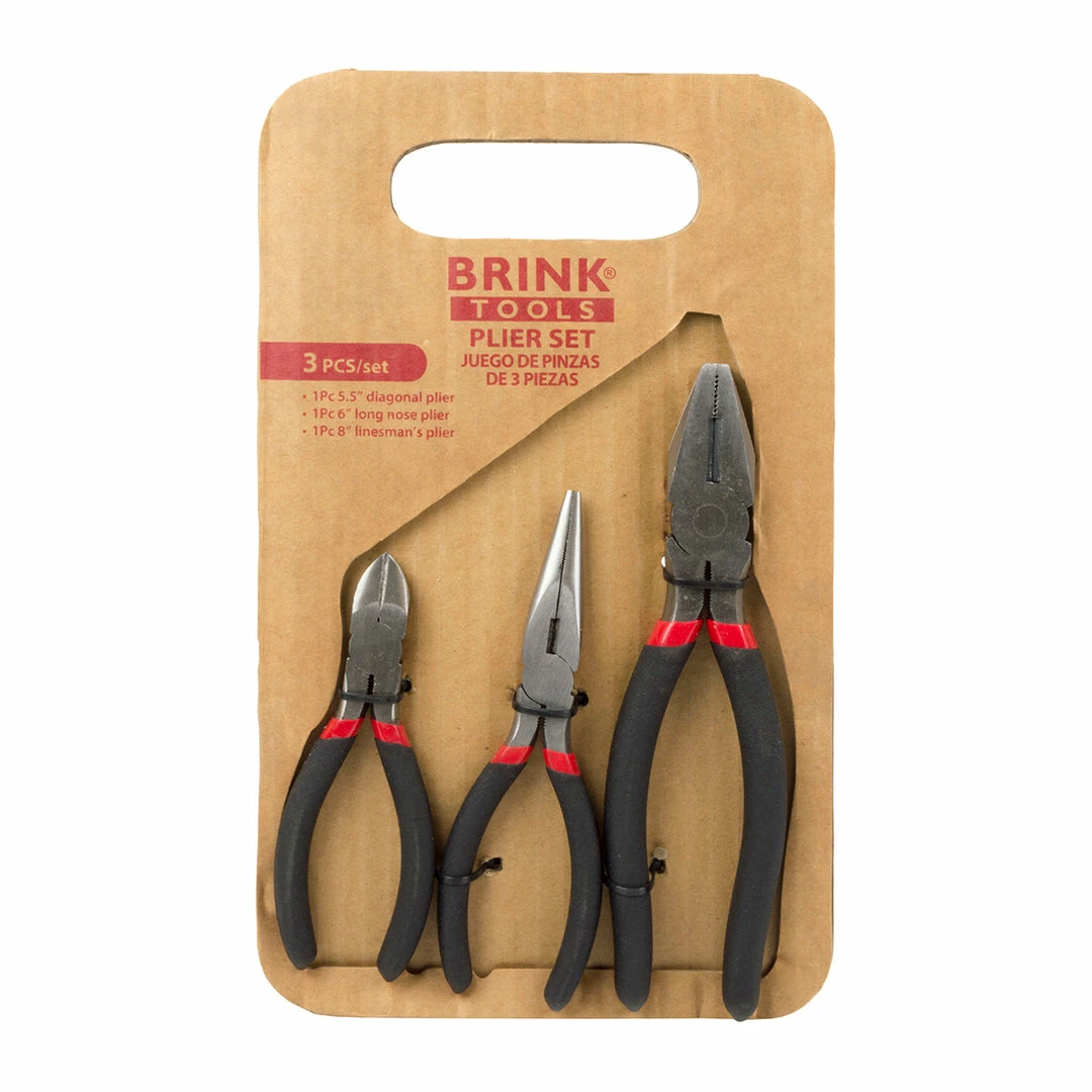 Grab on to savings with closeout deals on a 3pc pliers set from Brink! No tool box is complete without some pliers, and with the included long nose, diagonal, and linesman’s pliers, you’ll be able to handle all manner of tasks. These professional tools are perfect for small, narrow spaces, and their comfortable, ergonomic grip means no slipping when doing delicate work.
