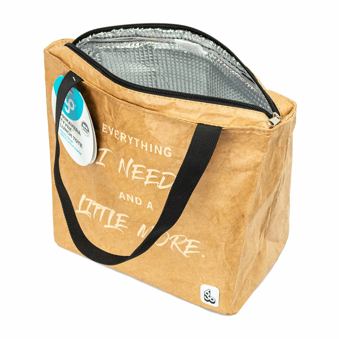 Carry everything you need for lunch, and a little more, with this Primavera Tyvel Lunch Tote from Built byo! This tote features a fun printed quote and is made from recyclable paper. It’s BPA free, has a secure zipper enclosure, long webbing strap handles, and an insulted easy wipe clean interior.