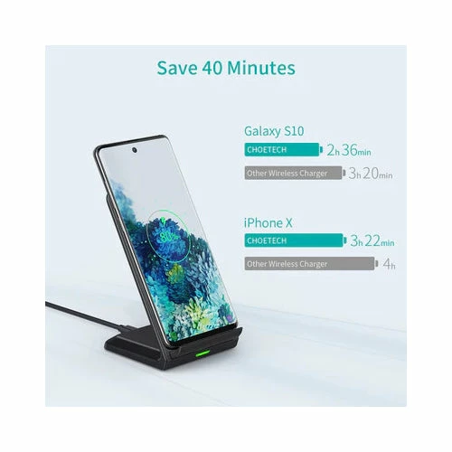 Keep your devices charged and ready to go with a Choetech Wireless Charging Stand! This Qi certified charging stand provides fast charging to your device and is case friendly, working with cases <5mm thick. The charging stand offers protection from over heating, over voltage, short circuit, and more. Micro USB cable included.
