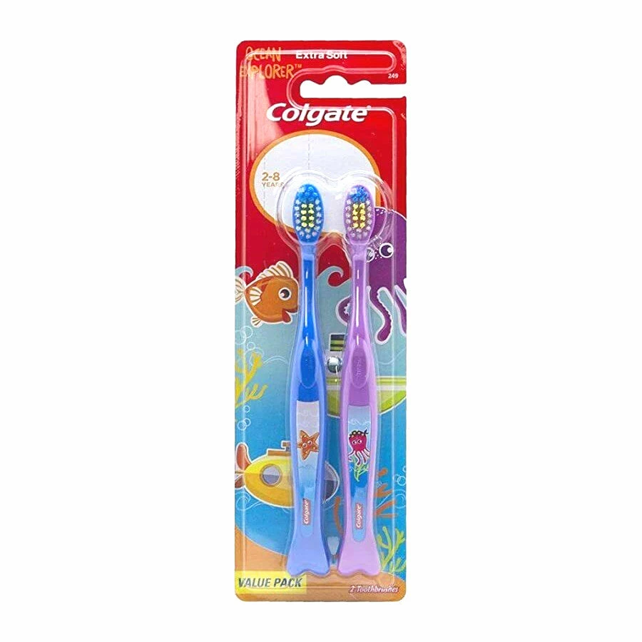 Make tooth brushing fun with a Colgate Ocean Explorer Tooth Brush! This value pack comes with 2 brushes, each with fun sea creature designs. The brushes feature extra soft bristles with varying height, providing gently cleaning for both big and small teeth.