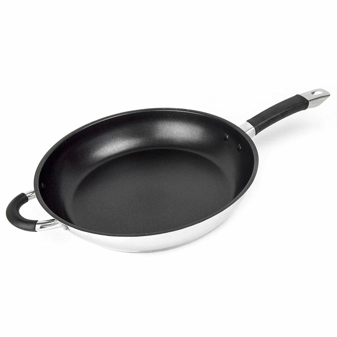 Cook with confidence with Complete Cuisine stainless steel cookware. Perfect for the budding chef, this 12 inch stainless steel cookware set features a non-stick Xylan surface, and induction heat design for evenly heated food preparation up to temperatures of up to 500°F. Plus, the riveted Silicone handle provides a cooler surface, reducing the risk of injury while preparing food! Great for students, first apartments, or anyone who enjoys cooking with flair!