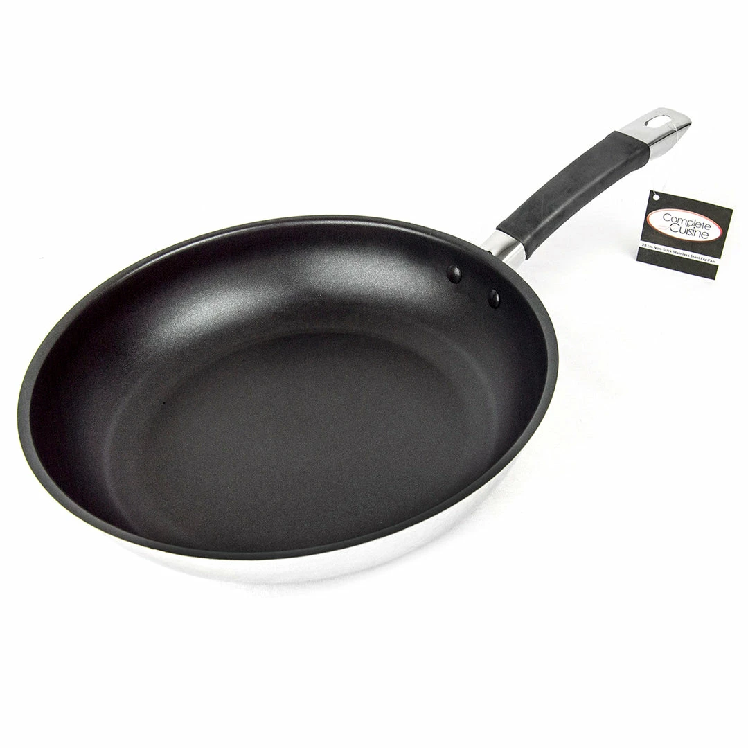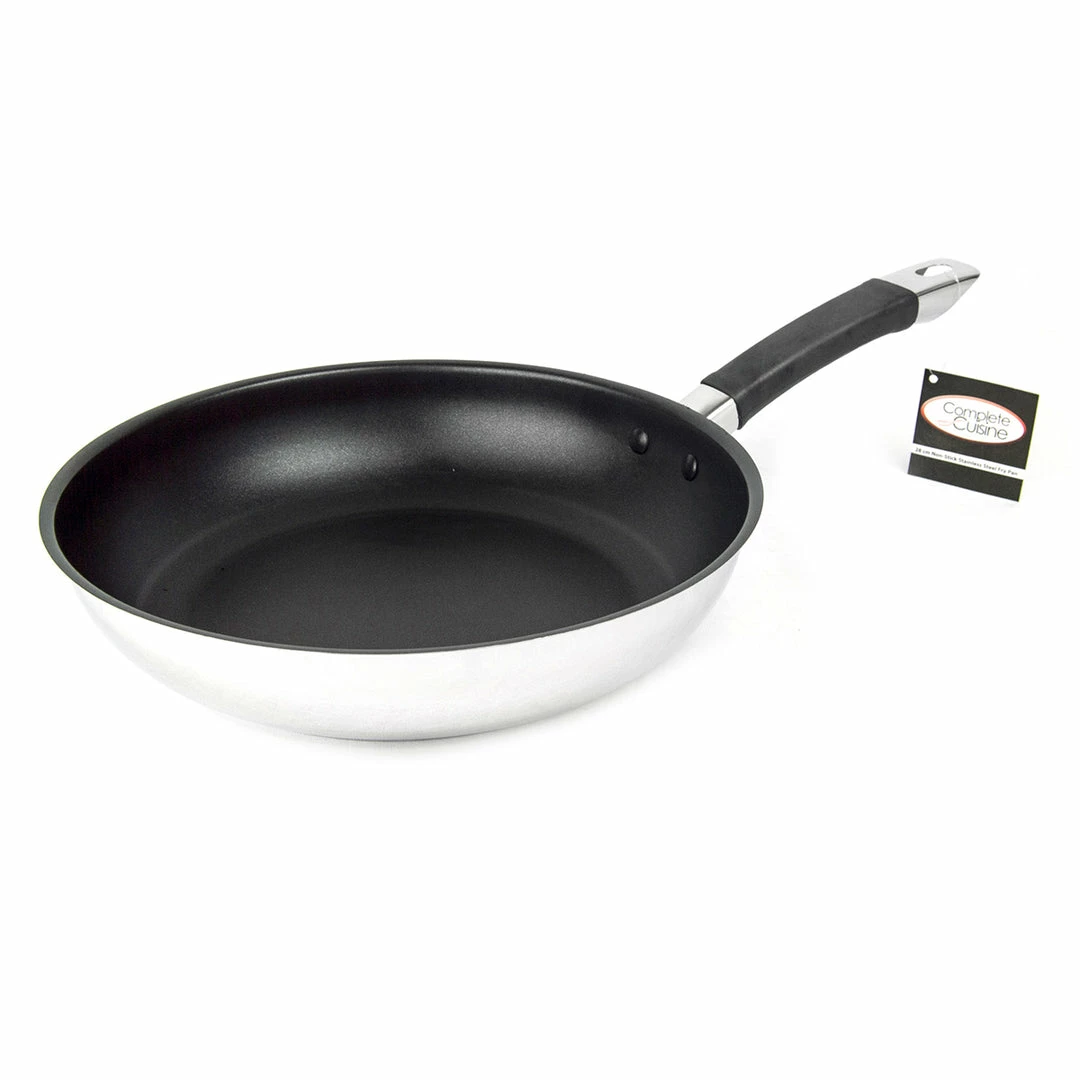 Save big with sizzling deals on Complete Cuisine stainless steel cookware! Perfect for the budding chef, this 9.5” stainless steel cookware set features a non-stick Xylan surface, and induction heat design for evenly heated food preparation up to temperatures of up to 5°F. Plus, the riveted Silicone handle provides a cooler surface, reducing the risk of injury while preparing food! Great for students, first apartments, or anyone who likes cooking with flair!