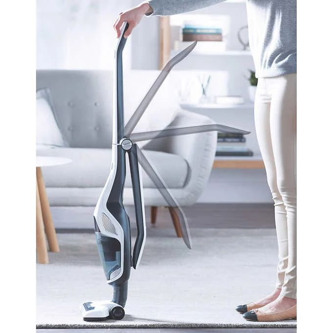 Effortlessly keep your home spotless and clean with a Eureka 2-in-1 Cordless Vacuum! This handy cleaner uses a 21.6 V Lithium Ion Battery to provide up to 60 minutes of runtime on a full charge. The vacuum is extra light coming in at just 5 pounds, and with swivel steering on top of that maneuvering around your home has never been easier! It has a detachable hand vacuum to make cleaning even simpler when needed and with a folding handle and compact design, storage is almost never a problem. Includes a dusting brush, crevice tool, HEPA filter and charging stand.
