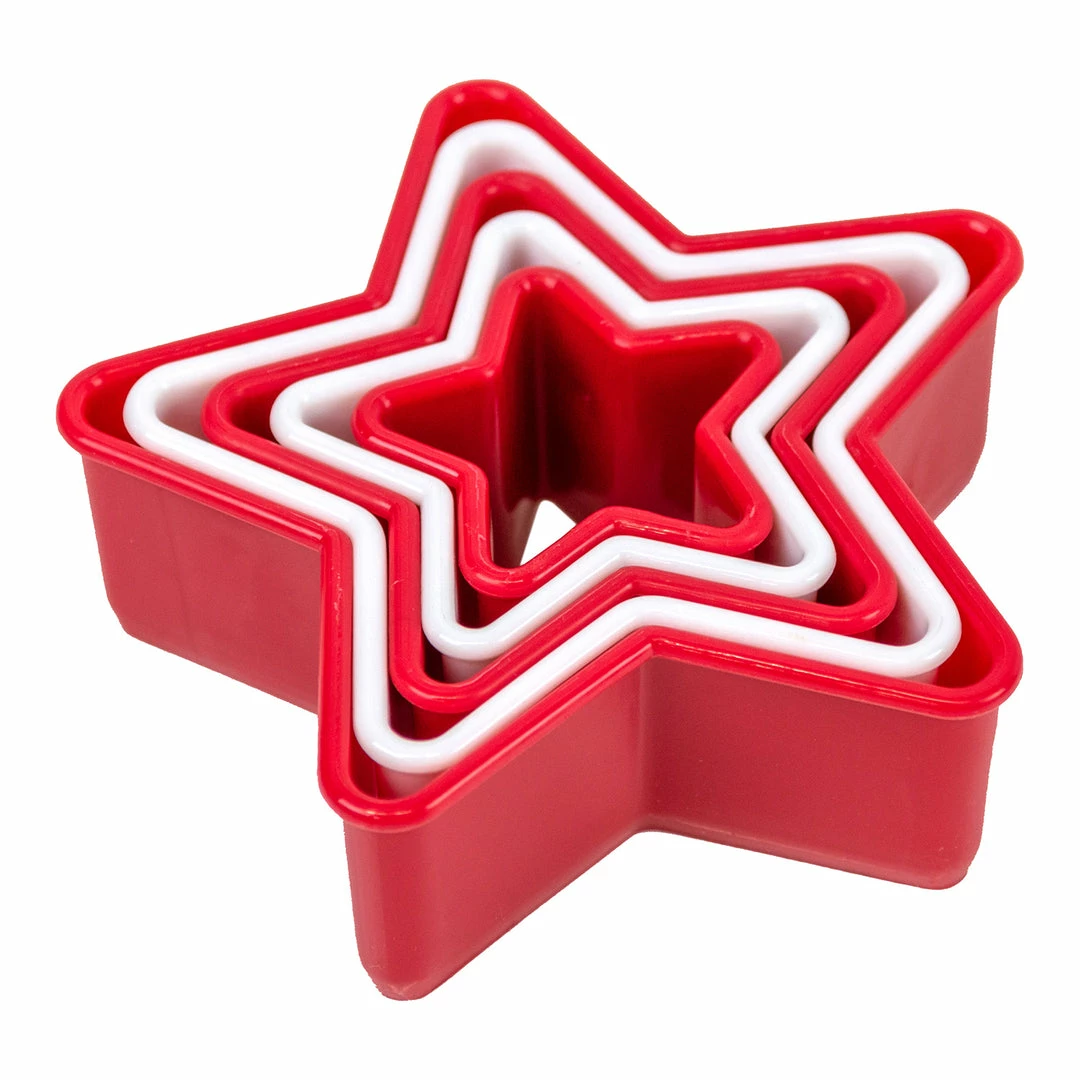 Create fun star shaped cookies in various sizes with a Farberware Cookie Cutter Set! This set includes 5 star shaped cookie cutters in various sizes and colors. The set also includes a convenient storage case.