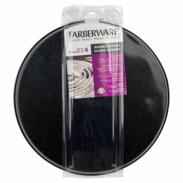 The Farberware Burner Covers, Set of 4 allows you to freshen up the look of your stove without having to buy a new one. It includes 2 large (10.5 in) and 2 small (8.5 in) covers. Whether your matching the look of your stove with your kitchen color theme or wanting a newer look for your stove these burner covers are answer!