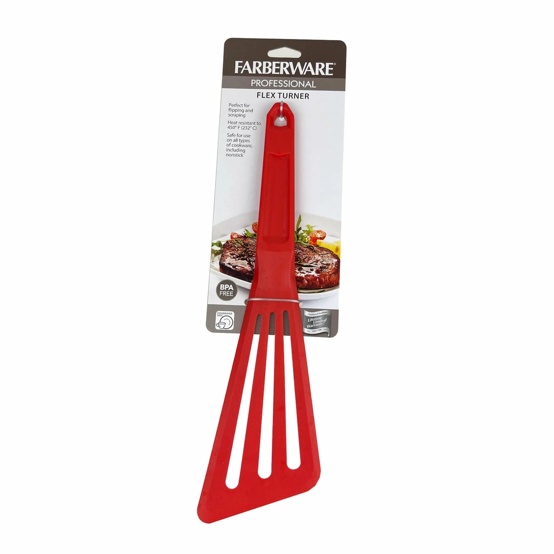 The Farberware Professional Flex Turner is the perfect kitchen tool for safely stirring and flipping meals! The turner is flexible and safe for use on all cooking surfaces. It’s also nonstick and heat resistant up to 450ยฐ F.
