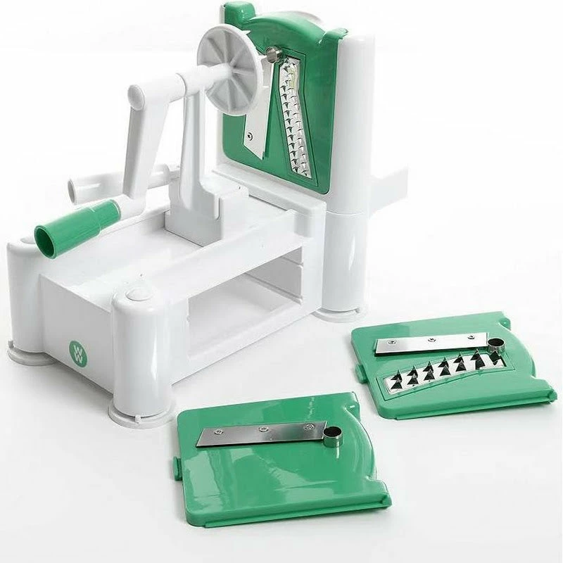 The Gibson Weight Watchers Adderley Spiralizer in Green/White is a super slicing grating machine! It includes 1 spiralizer, 1 shredder blade, 1 spiral blade, and 1 straight blade all providing a specialized texture of your choice. It enables you to prepare your meals for the week and create healthy alternatives. ย ย Also, itโs a fun way to make healthy food that fill your suggested Weight Watchers portions.