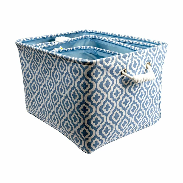 Home Ease Canvas Storage Basket, Set of 4, Blue is where style meets functionality!Β You can store baby items, magazines, paperwork, kid’s toys, hats, socks… the list is endless.Β This baskets always look great and will keep your house organized and uncluttered.Β The easy carry rope handles make carrying easy and convenient.Β Perfect for storing on closet shelves at the base of closet under-bed linen closet or just out in the open.