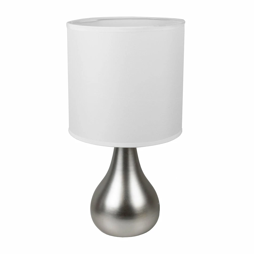 Add a touch of modern flare to any living space with this Intellibrands 14″ Teardrop Style Table Lamp & Shade, Matte Silver. It’s matte silver metal body in a teardrop shape with classic white shade is sure to be the perfect addition to any home décor. It’s built-in 2-way switch makes turning it on/off a breeze. This lamp will not only be a conversational piece, but it will provide light as well as depth and dimension to any room within you home.