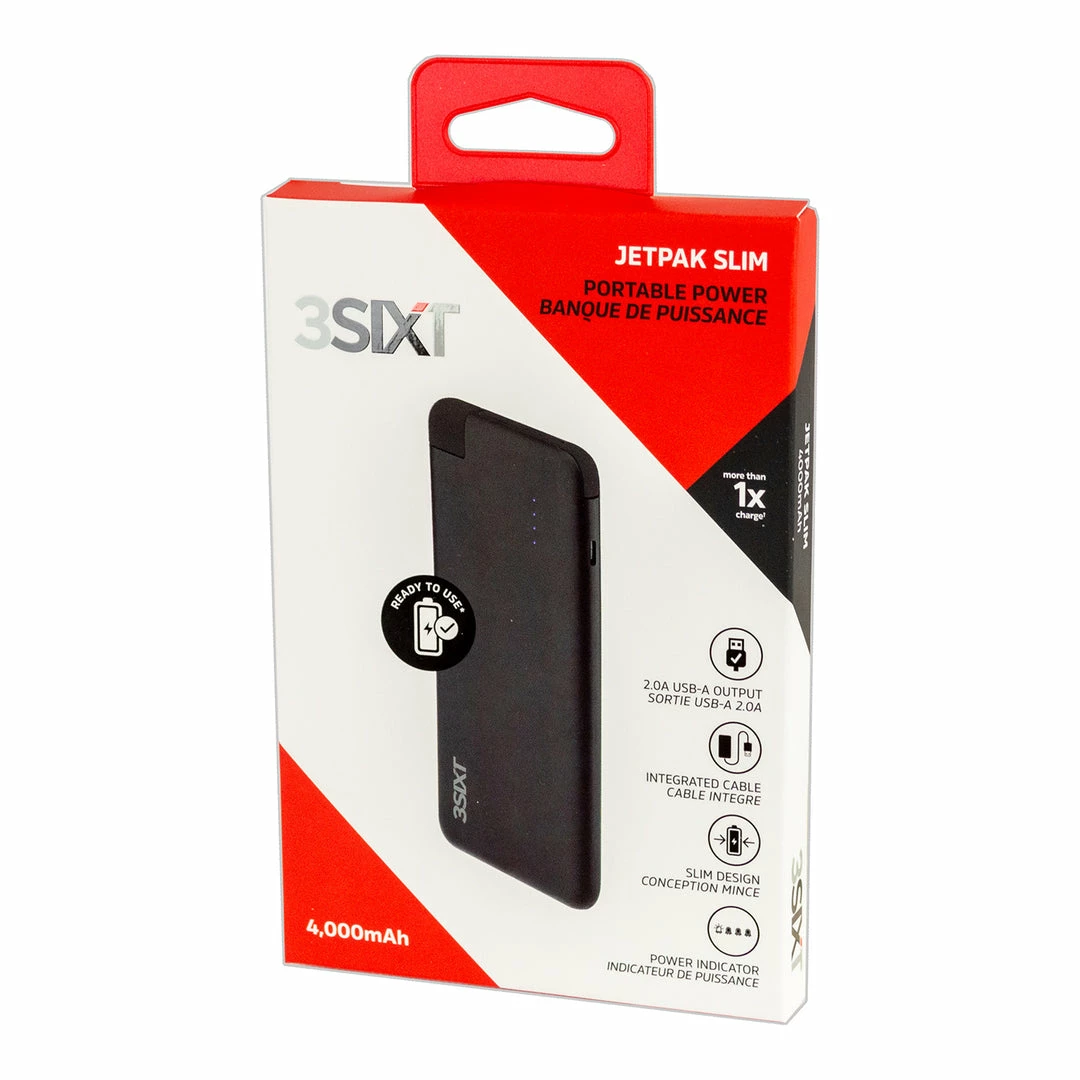 3SIXT JetPak Slim power pack is small for superb portability yet packs the power of 4000mAh of juice. Need a quick top-up or in desperate need of rescue from a dead smartphone battery? With a slim and sleek profile, the 3SIXT JetPak Slim is your go-to portable power solution when your juice is about to run out. Compatible with most smartphones, tablets, and other USB enabled devices.