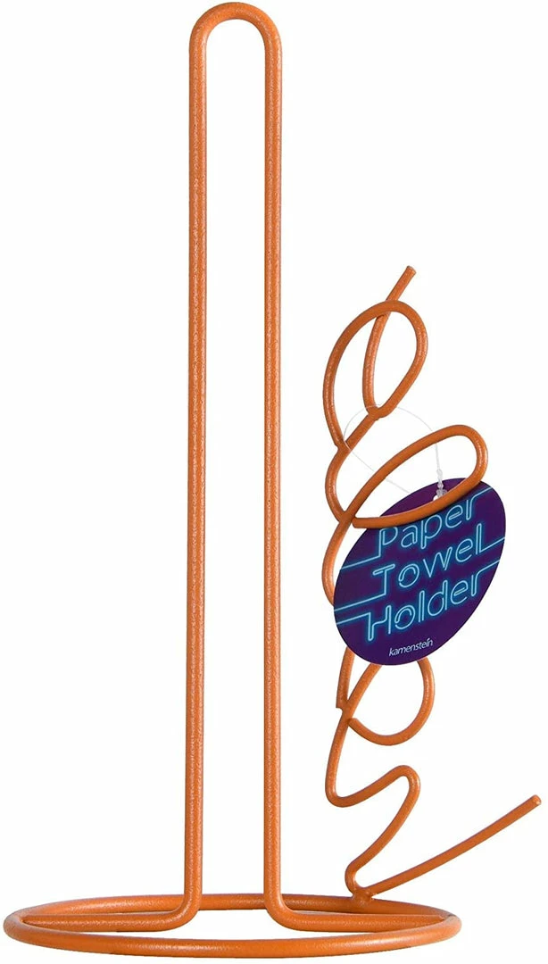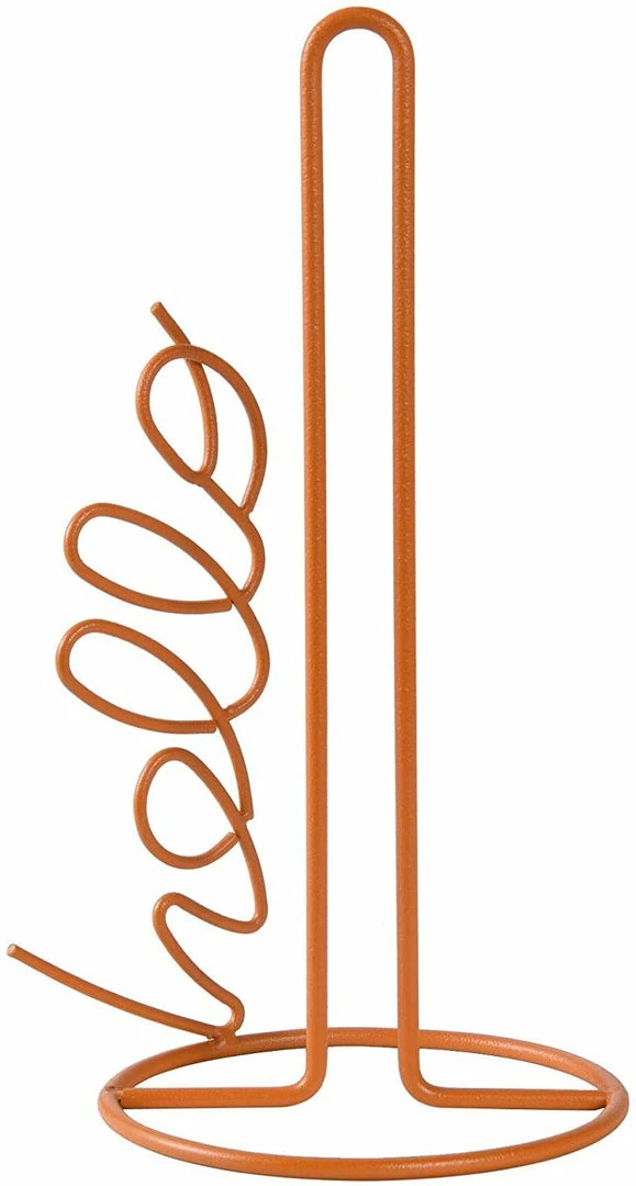 This space-saving Kamenstein Amber Glow “Hello” Design Paper Towel Holder is made of lightweight, durable powder-coated wire, and features a playful motif to liven your kitchen decor. The motif also does double-duty as an aid for neatly tearing paper towels from the roll. Fits most sizes of paper towel rolls. Wipe clean with a damp cloth and dry thoroughly; do not immerse in water.