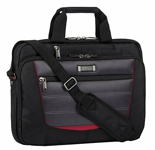 With pockets to hold your laptop, tablet, files, and personal accessories, this laptop case is perfect for the modern professional on the go. The Kenneth Cole reaction get the ball rolling laptop bag is made from durable ballistic polyester fabric and features a two-tone design with contrast color piping, multiple storage pockets, two top handles, and an adjustable shoulder strap. The main compartment has a zip around closure and a fully lined interior that includes dual padded pockets for your laptop and tablet and a gusset pocket to hold files and documents. Exterior zipper pockets and an organizer compartment offer convenient storage for all of your small items and personal accessories.