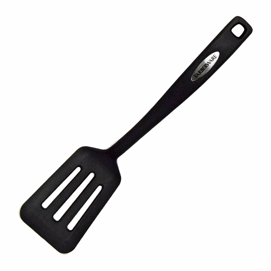 Happily grill, sear, and flip with a Farberware Nylon Slotted Turner. Whether you’re searing steaks, grilling vegetables, flipping burgers, or just want a reliable kitchen utensil to serve up your casserole, this slotted turner has you covered and then some. Heat resistant up to 400 degrees Fahrenheit, these reliable cooking utensils are a must-have in any kitchen.
