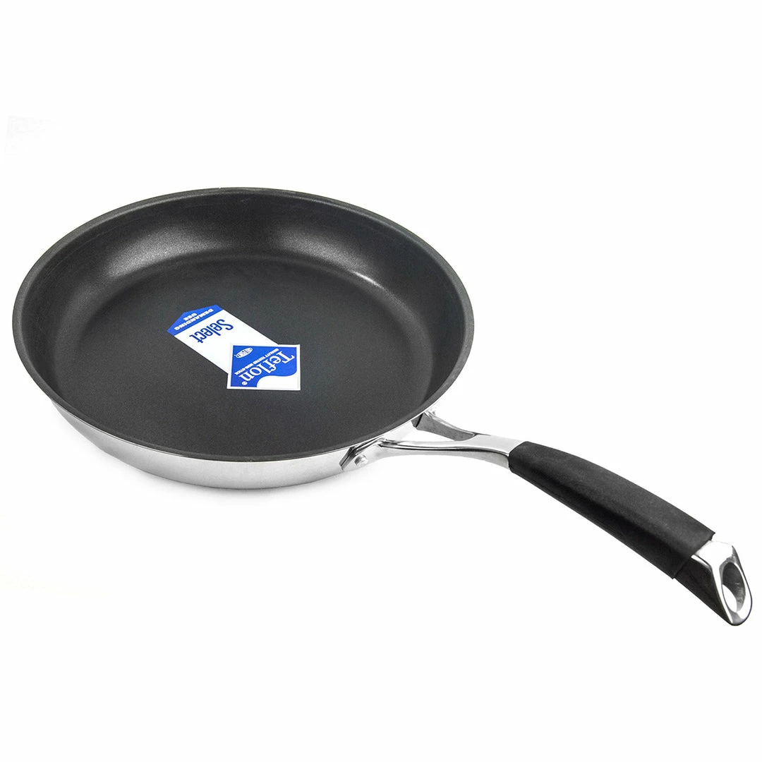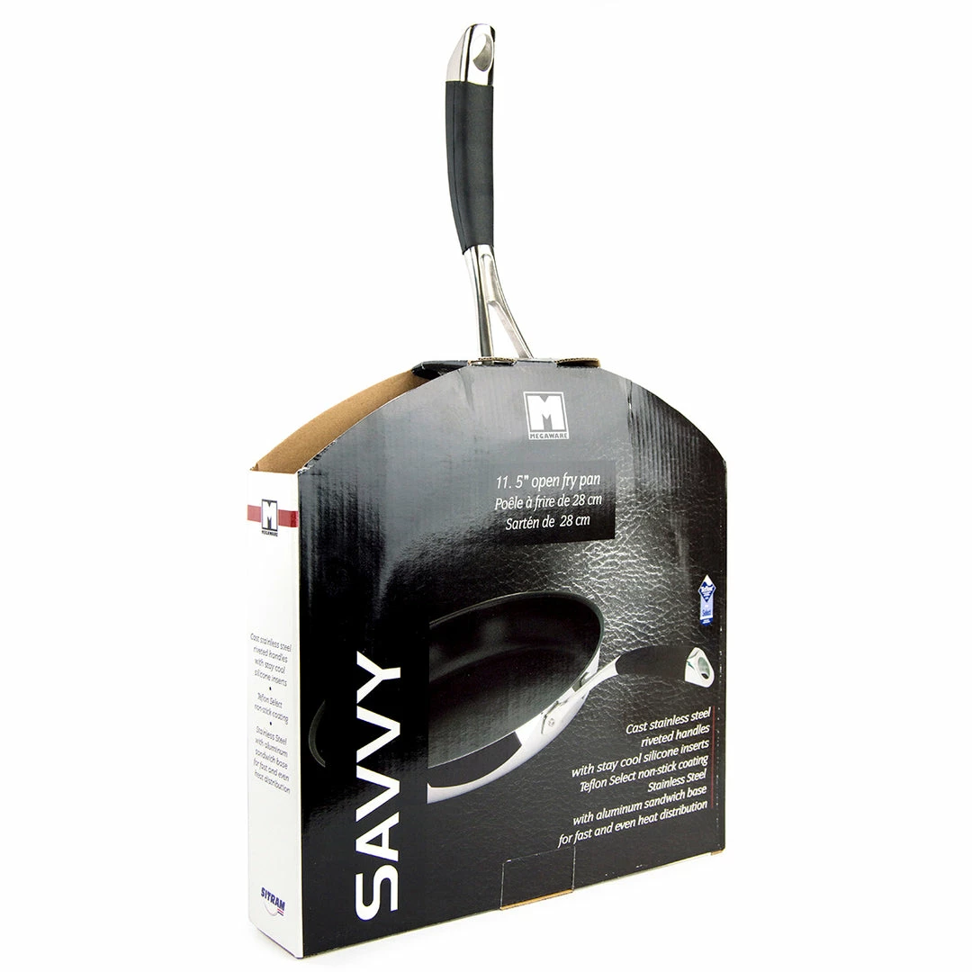 Get big savings with factory overstock prices on a Savvy Frying Pan! With its non-stick interior and easy to grip, stay-cool silicone handles, this 8 inch frying pan is perfect for grilling vegetables, frying burgers, grilled cheese, stir-fry, and all manner of home-cooked favorites. And with its scratch-resistant and easy to clean stainless steel construction, you’ll enjoy cooking with this saucepan for years to come.
