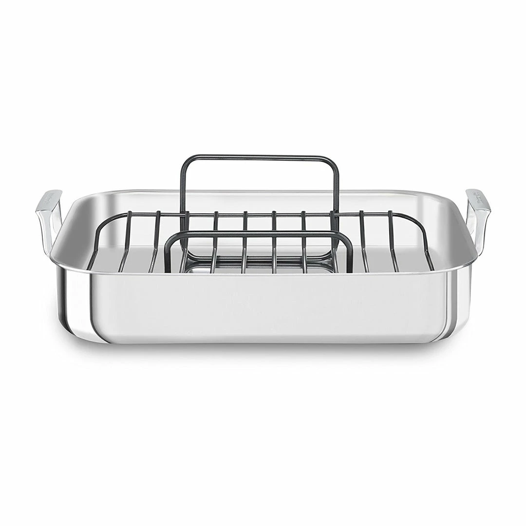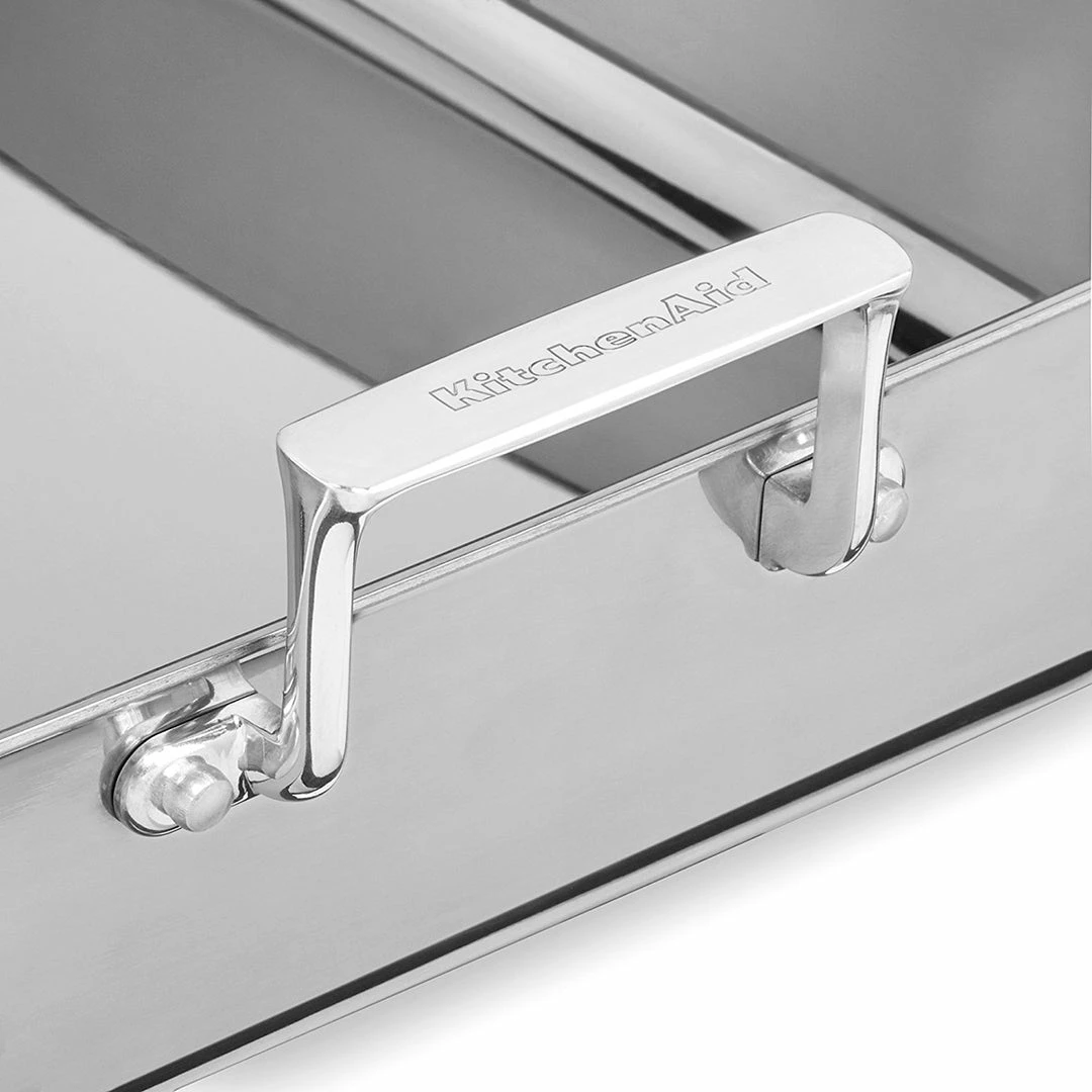 Prepare delicious roasts with this KitchenAId Stainless Steel Roaster! This 16 inch roaster has a tri-ply body, designed with 3-layer construction. Two layers of 3mm thick beautifully polished stainless steel surrounds an aluminum core, providing rapid and even heat distribution. leading to stability and wonderfully cooked meals. Beautiful and functional design that won’t break your bank account; that’s KitchenAid!