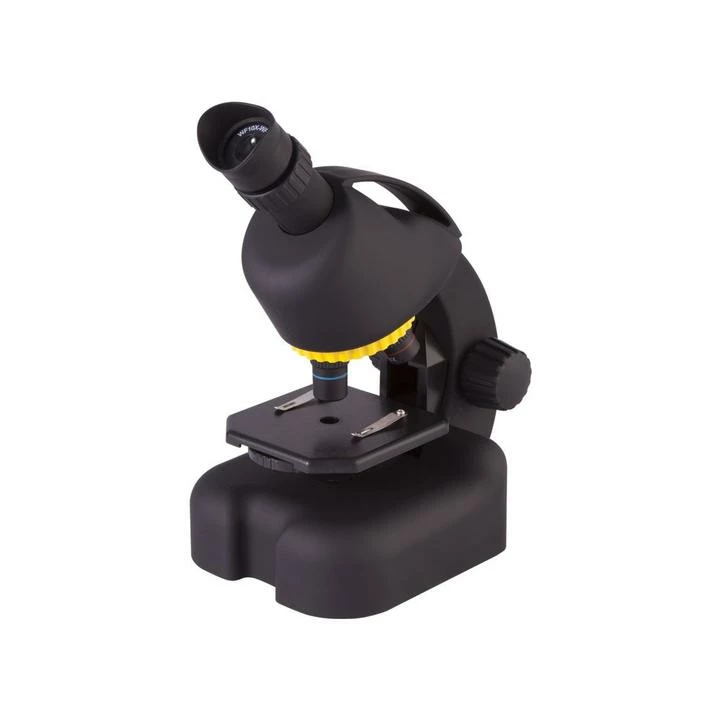 The National Geographic Zoom Microscope allows junior scientists document and share their microscopic discoveries. This compound microscope has a zoom eyepiece, a rotating turret of three objective lenses and a magnification range of 40x-640x. The included adapter allows the user to secure their smartphone to the device to capture the image in the eyepiece for later analysis. The microscope offers LED illumination and comes with slides and a full set of collection tools.