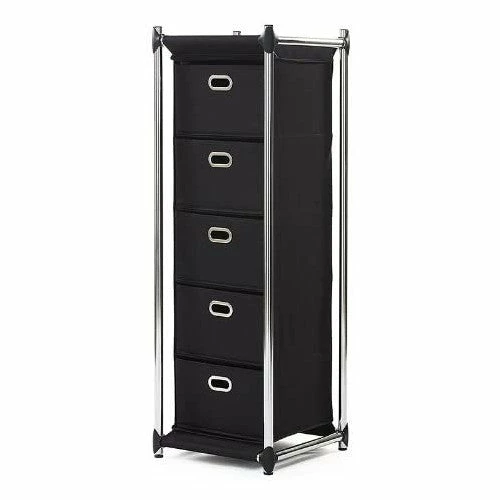 Get organized at home with a Neat Freak 5 Drawer Tall Boy! This extra sturdy organizer features polished chrome poles for industrial durability and adjustable feet to accommodate for any type of floor. It also has chrome grommets for its 5 drawers, giving it a sleek modern design.