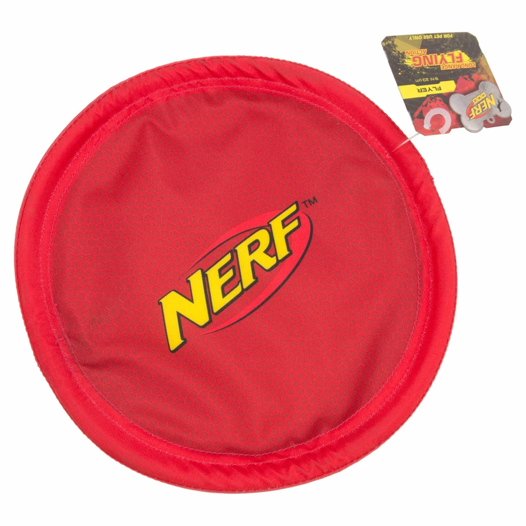 Fetch great times with your pet with a flying disc from Nerf Dog Toys! This nylon flyer is great for games of fetch; the soft, yet rugged, tear-resistant rubber and nylon construction files with ease, and is virtually unsinkable. No matter how excited your pet is to fetch these – and let’s be clear, they’ll be pretty excited – with its rugged construction, they won’t destroy the disc when retrieving it. Enjoy countless hours of fun with your pet, without having to replace your dog toys every time you want to play fetch. If you want a durable frisbee that can stand up to an enthusiastic, chewing dog, it’s Nerf or nothing!
