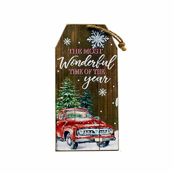 Decorate your house this holiday season with The Most Wonderful Time of the Year Decor! This hang ready sign features a tag shape with a fun
