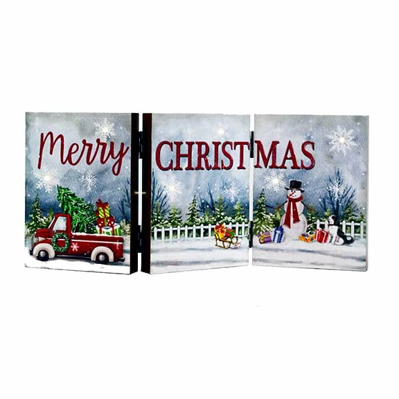 Decorate your house this holiday season with a Merry Christmas Table Stand with LED Lights! This table decor features 3 hinged picture blocks that form a “Merry Christmas” design with 6 LED lights. The lights have a convenient On/Off switch and require 2 AA batteries for operation. Get yours at a bargain while