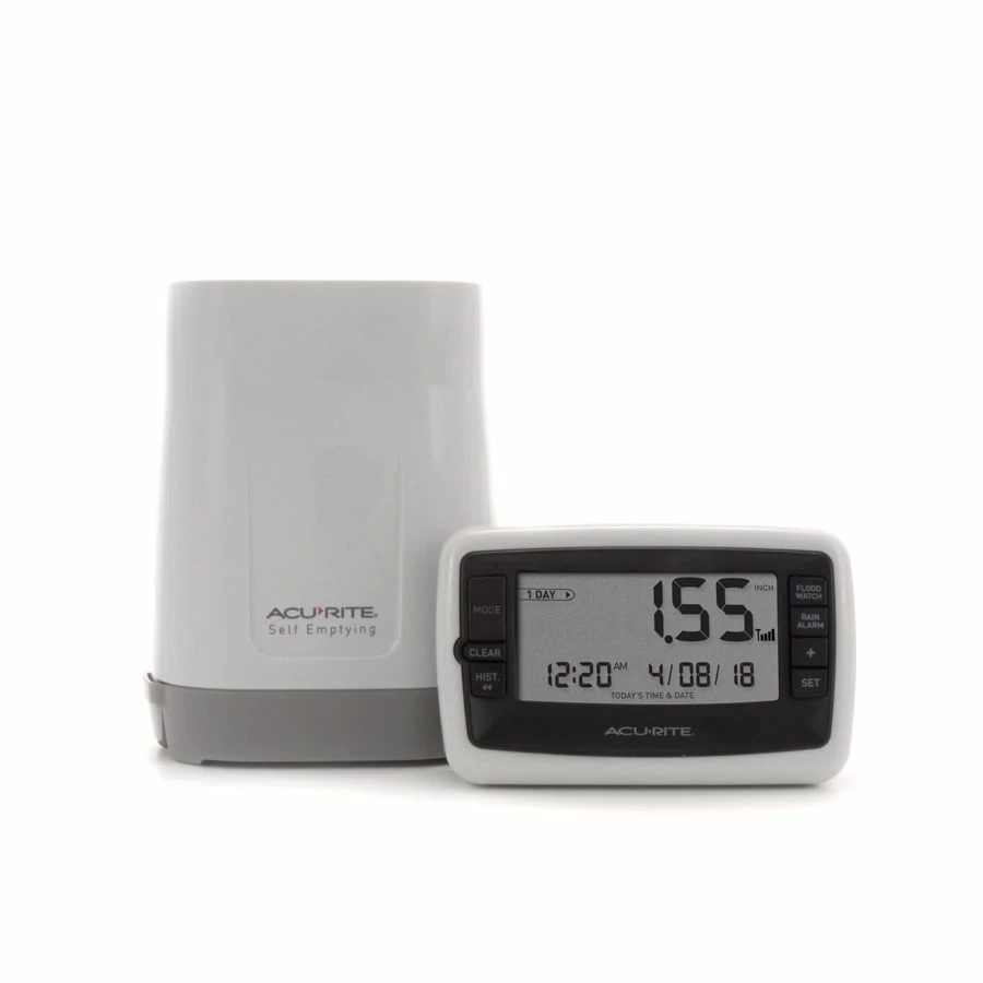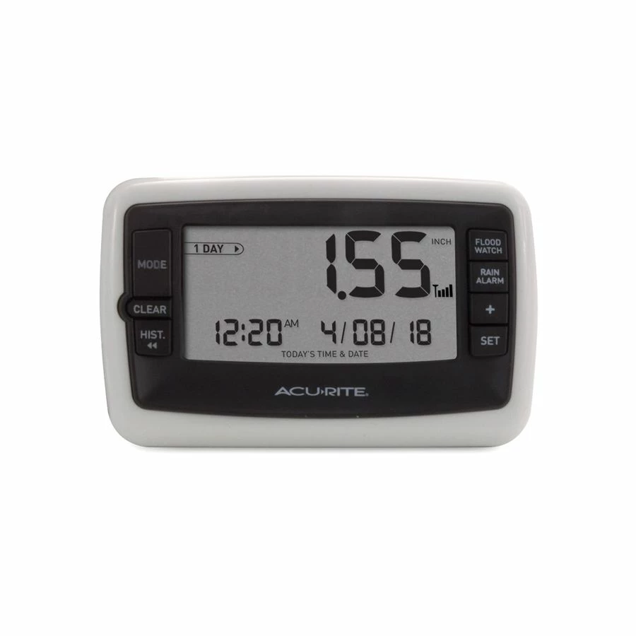 Plan the day with confidence with your own accurate and up-to-date rainfall information – right from your own backyard! The AcuRite Digital Rain Gauge with Self-Emptying Wireless Rain Collector features precise, reliable rainfall measurements. The bold, easy to read LCD screen displays daily rainfall and records rainfall history, including a rainfall event, 1 day or 7 days of measurements. Includes rain and flood watch alarms, alerting you when rainfall begins and when conditions are right for possible flooding. The outdoor sensor is self-emptying and transmits rain data wirelessly. Includes a clock and calendar. Display stands upright for tabletop use or is wall-mountable.