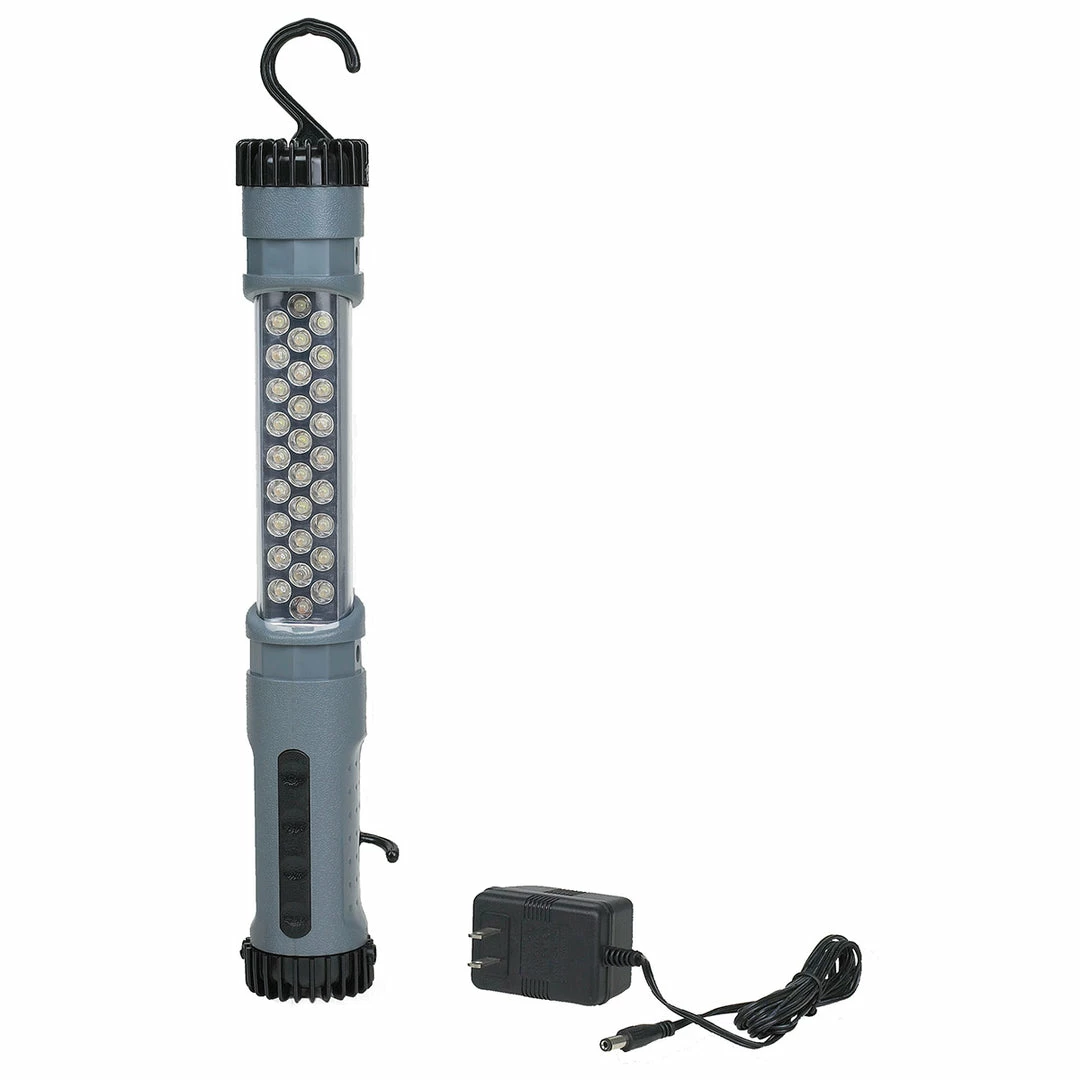 Shine on with this Alert Stamping 27 LED Task Light! With its 27 super bright LEDs, two folding swivel hooks, and dual brightness modes, this rechargeable task light is built tough. Designed to withstand the rigors of everyday use, this rugged, dependable trouble light will be ready when you need it.