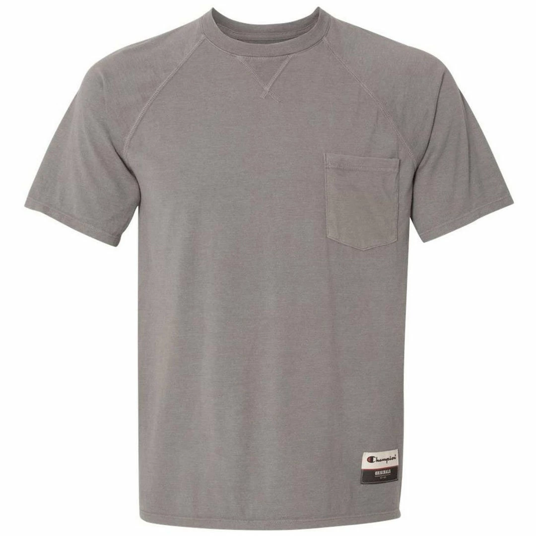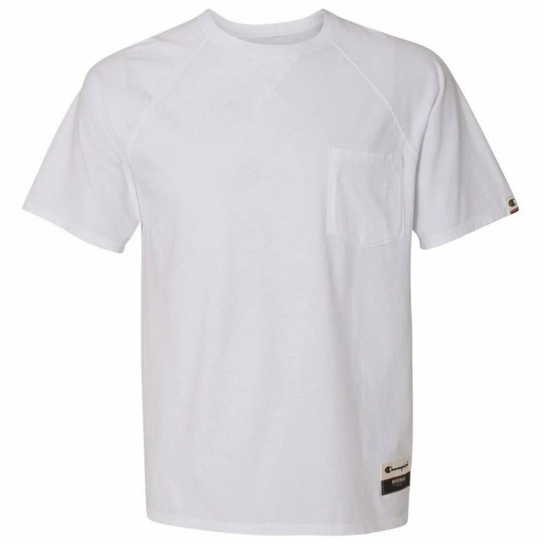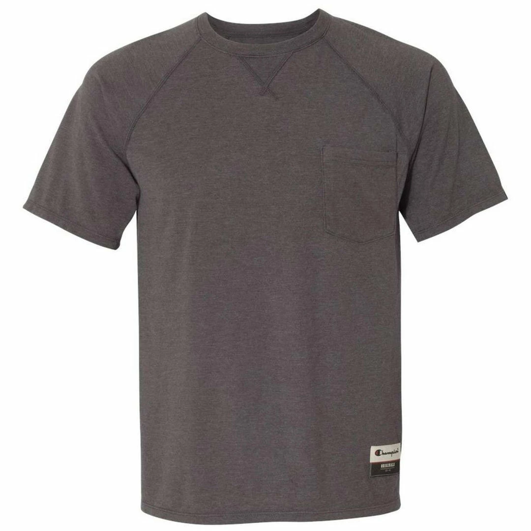 - Champion “C” logo patch on left sleeve and jock tag on lower left torso