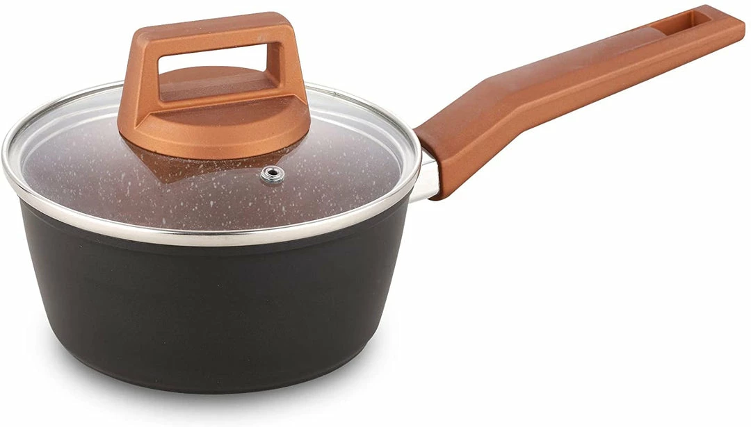 forged aluminum 7″ sauce pan features a nonstick interior coating and