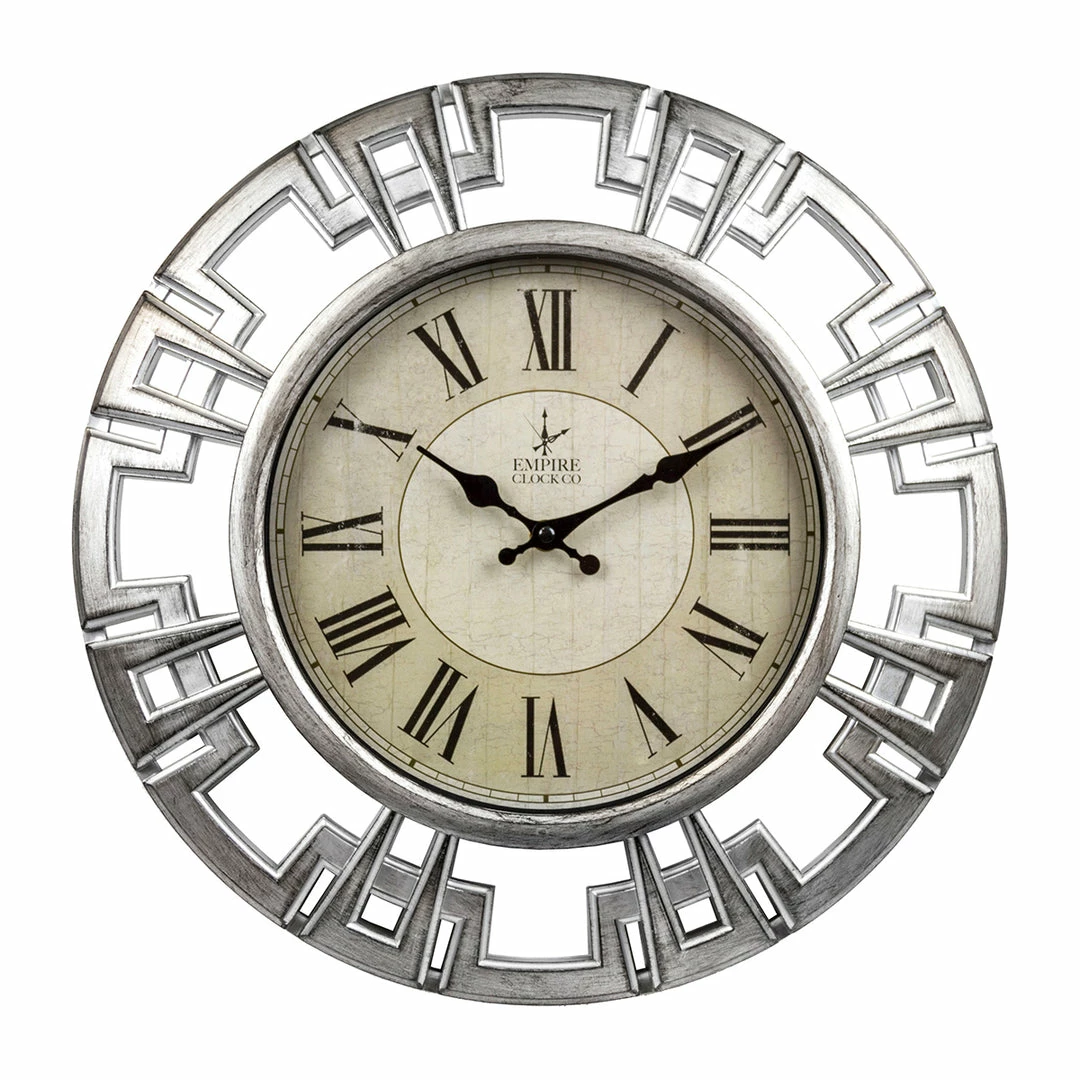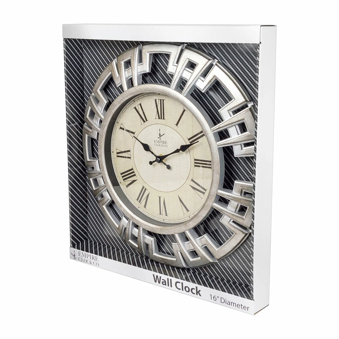 The Empire 16 inch Brushed Nickel Decorative Wall Clock is where contemporary design meets classic style! These clocks are 16 inches in diameter, beautifully crafted and designed with intricate frame detail and a faux marble face. The