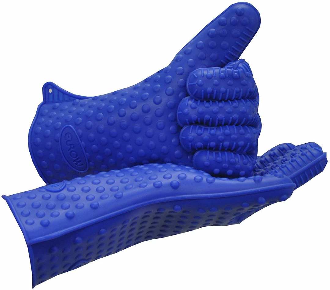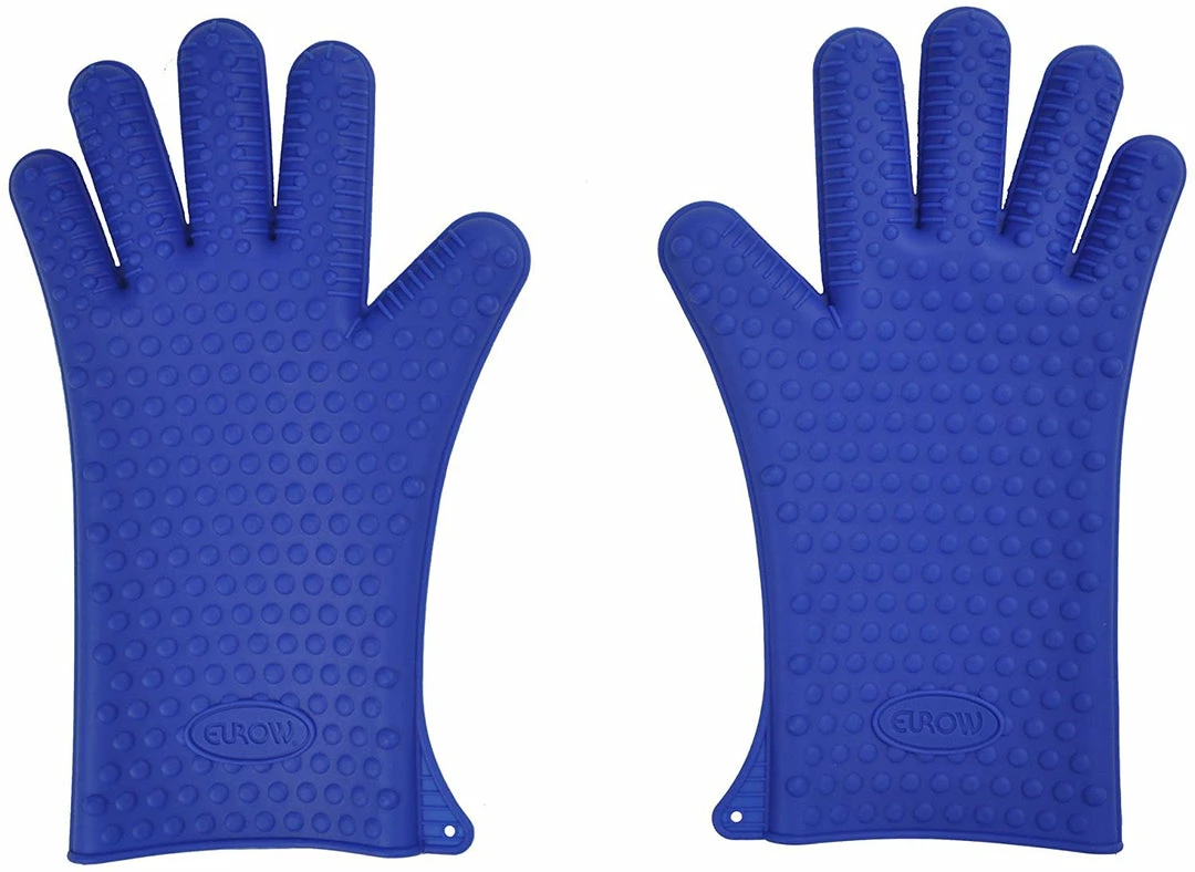 A great alternative to regular mitts, these gloves are perfect around the kitchen and the BBQ areas. A benefit that a typical textile does not offer is that these gloves are made of silicone and are naturally waterproof. No more burning your hands around liquids or your gloves getting soaked rendering them unusable. These gloves will keep your hands safe and dry. These gloves are made of 100% BPA free silicone and can be recycled. The Eurow silicone cooking and grilling gloves are heat resistant up to 425 degrees Fahrenheit. This product is dishwasher safe but can also simply be washed in warm soapy water. When dirty, simply place in your dishwasher and run together with your dishes, they will come out as good as new. One size fits most, with 13 inches long, your wrist and forearm are protected. Because of the high friction coefficient of the silicone material, these gloves are ideal to open preserves, jars or any container that would be hard to untwist by hand. Not intended for long exposure to boiling water or flames or use with deep fryers.ย