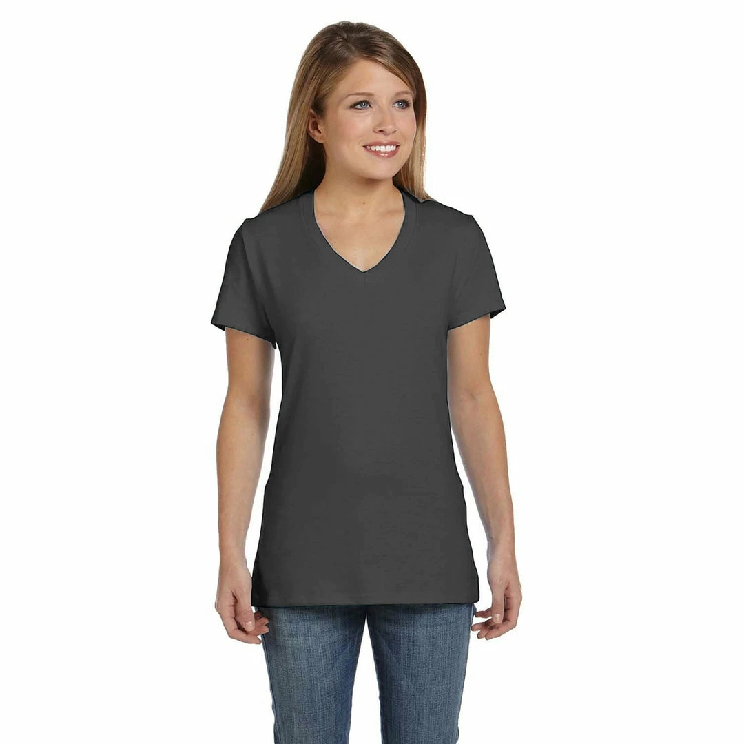 100% ringspun cotton in a classic feminine fit! Durable double-needle stitching