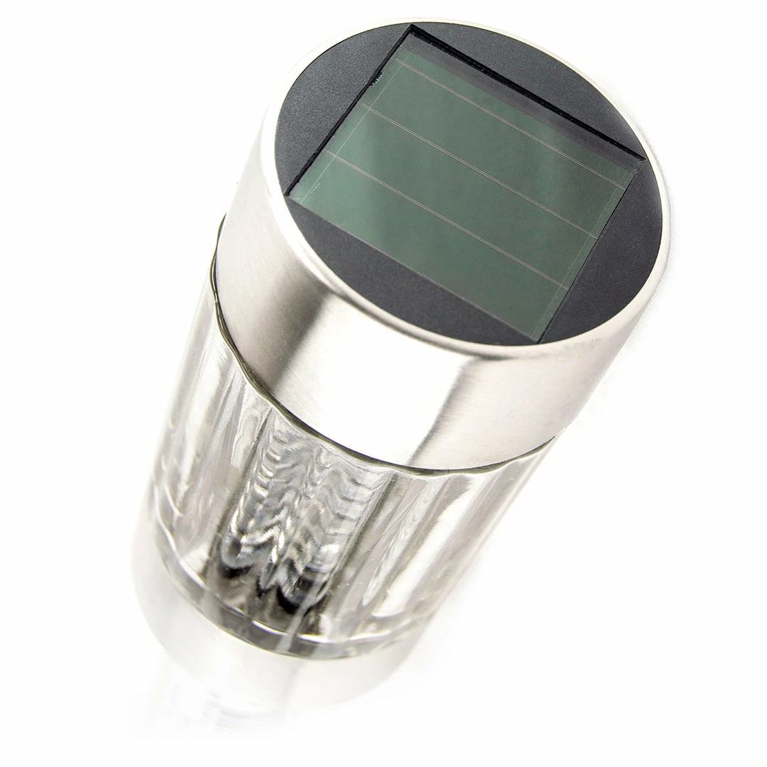 - 17โ x 2.5โ Solid glass solar light w/stainless steel stem