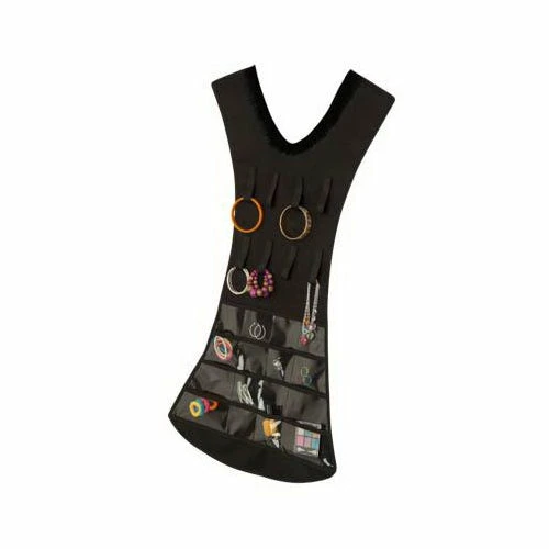 Honey-Can-Do Dress Jewelry Organizer with Mesh Collar, Black, 32-Pockets and 16