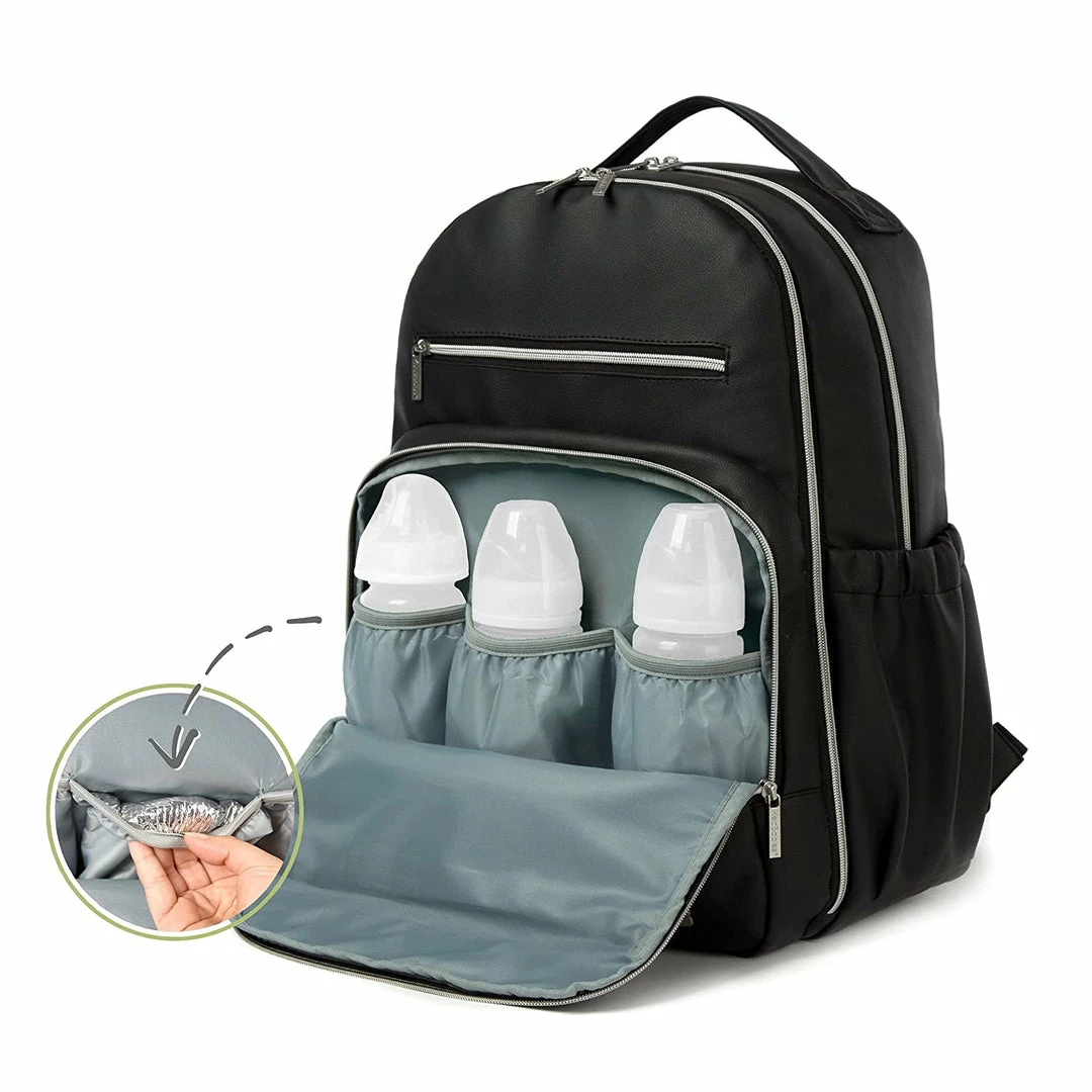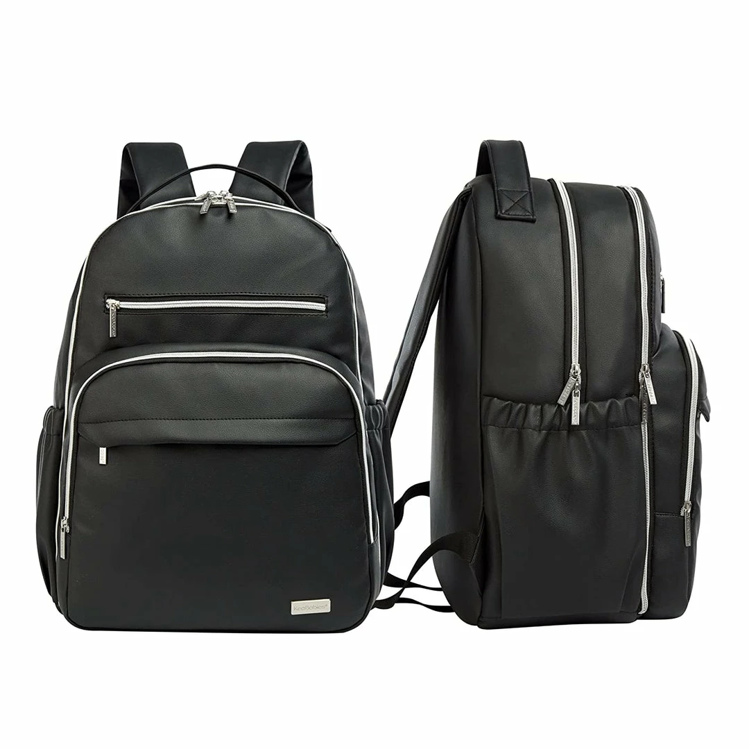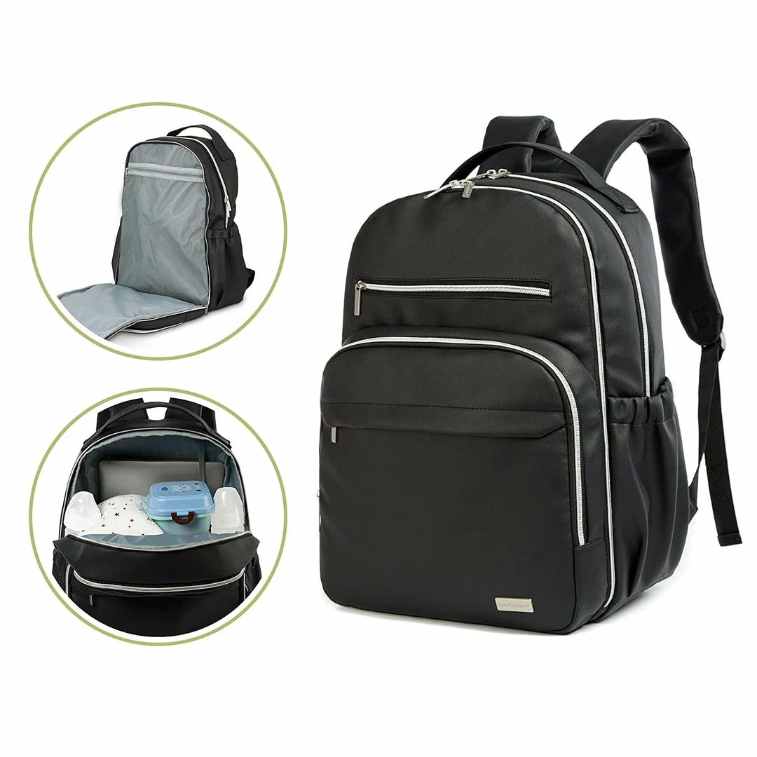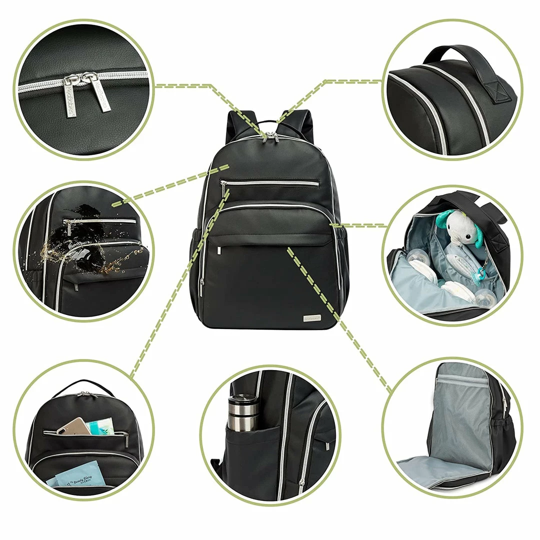 The KeaBabies Diaper Bag Backpack is designed to combine sleekness with utility. Made from waterproof vegan leather, the bag features tons of storage with a large main compartment, easy access zipper pockets, water bottle pockets, and a secondary compartment. It has a large carrying handle and is extremely easy to clean, offering top of the line convenience.