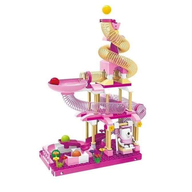 Kididdo fantasy rolling funland in pink is perfect for children ages 3 and up. Included are 178 colorful blocks and pieces to assemble this fantasy funland. Once assembled your child will be able to launch the colorful balls through this fun spiraling maze. Your child’s fine motor skills and imagination will develop and grow while playing with this fun activity center.