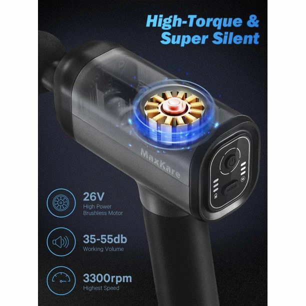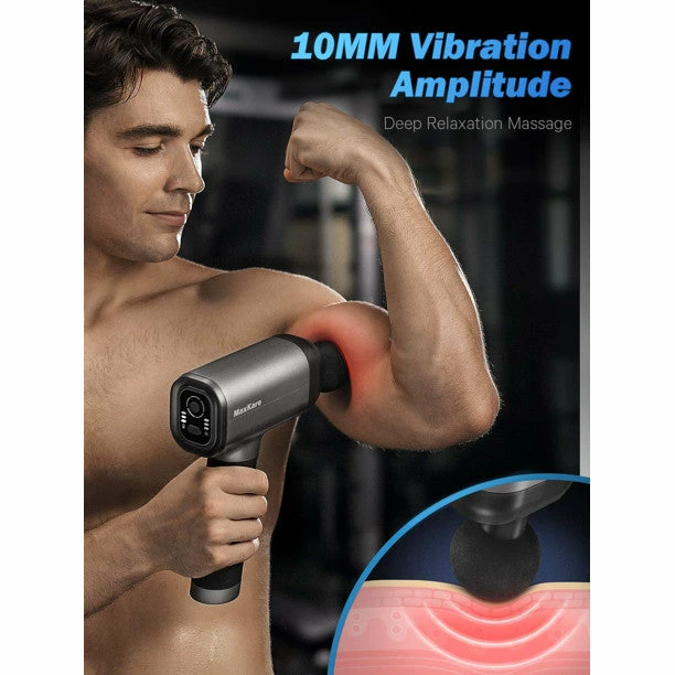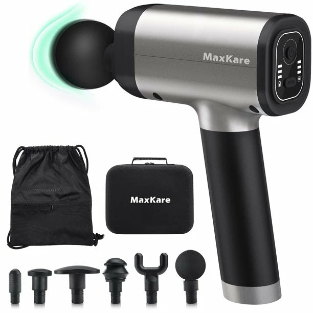 Get Relief from aches and pains with a MaxKare Cordless Hand-Held Massage Gun! This massage gun has 5 adjustable speeds from 1200-3300 rpm with 3 different modes to give you full control over your massaging experience. Battery charge time is only 3 hours, while operation time is up toย 20 hours at lowest setting or 7.5 at the highest. Includes a carrying case, carrying bag, 6 interchangeable nodes, charging plug, and user manual.