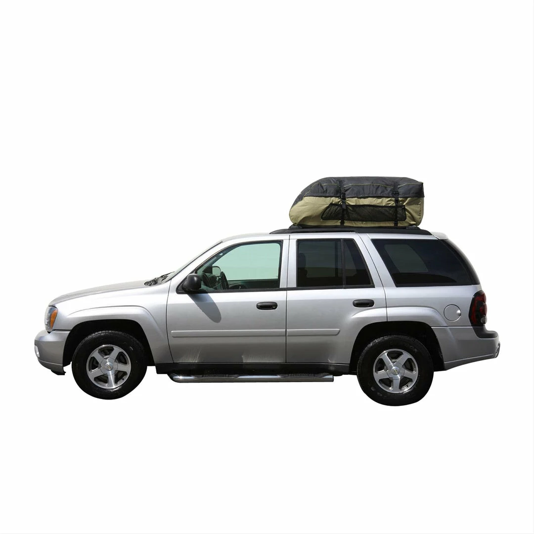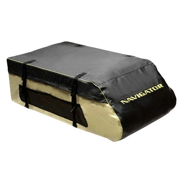 Pilot Automotive Navigator cargo carrier is aerodynamically designed to reduce drag and save gas. It is made from heavy duty waterproof material and has a heavy duty zipper to withstand inclement traveling weather. It mounts to either cross bars or side rails with a padded base and folds flat for easy storage. It provides 15 cubic feet of storage with side pockets for additional storage.