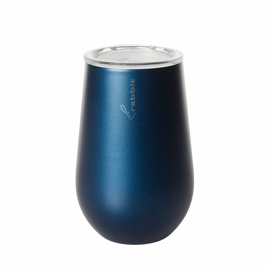 Enjoy hot or cold beverages in style both indoors and outdoors with this Rabbit Stainless Steel Tumbler. Crafted of durable 18/8 stainless steel that will not alter or absorb flavors or colors, these tumblers have a double-walled design that maintains the temperature of drinks longer while remaining condensation-free. Perfect all around tumbler for coffee, tea, cocktails and wine. The plastic lid has an opening for spill-free sipping, and the non-slip base provides stability. Hand wash only.ย