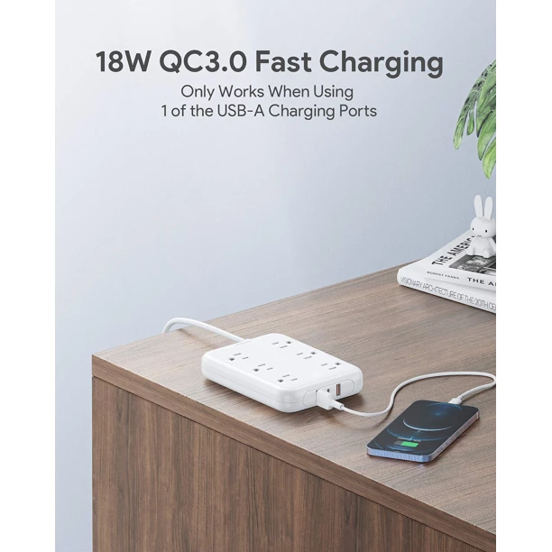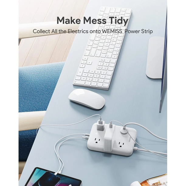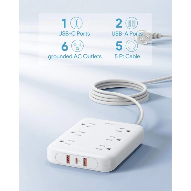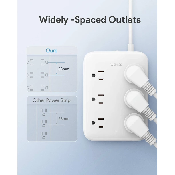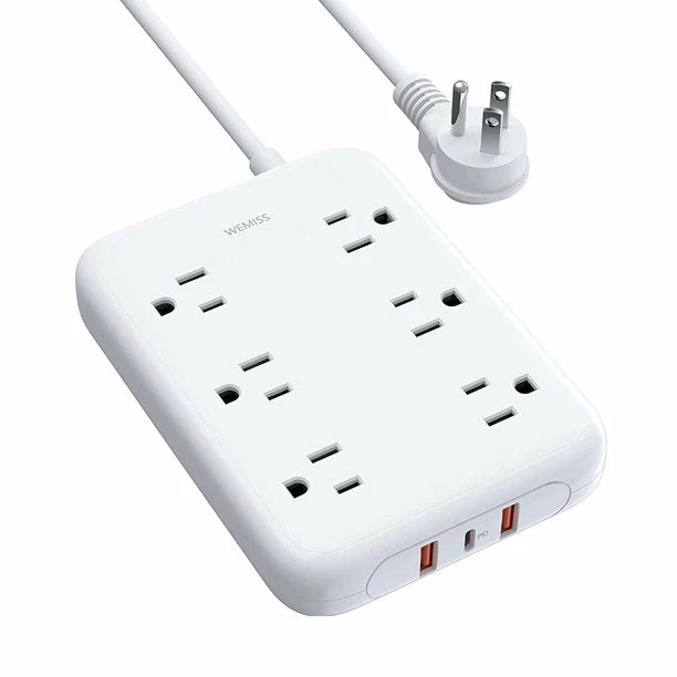 Expand and organize your home outlets with a WEMISS Power Strip! This surge protector has 6 AC outlets and 3 USB ports, giving you tons of versatility to set up home entertainment stands, computer or work desks, and more! It also features over-heat protection, over-current protection, short-circuit protection, fireproof material, and a 5ft cord.