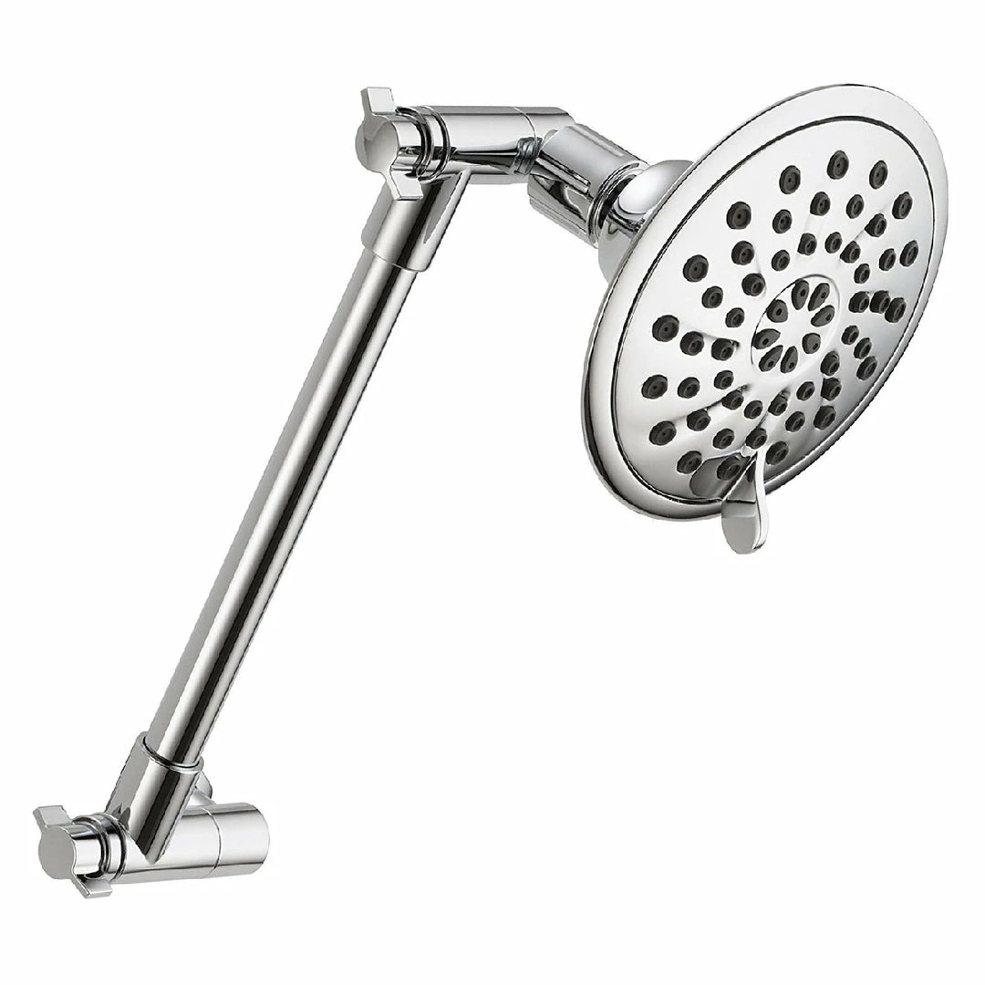 The Peerless 3-Setting Downpour Plus Showerhead with Adjustable Arm, Chrome will add style and elegance to any bathroom. This showerhead has 3 spray settings- full body, massage, pause with a 10 inch adjustable shower arm that lets you choose the perfect height and position for your shower needs. The downpour plus head has a solitary full-spray design and extra-wide spray coverage that will help get you clean in no time. Get one today and start experiencing the shower of a lifetime!