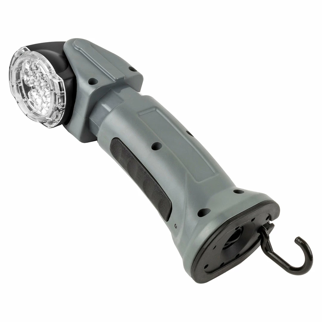 Work brighter, with savings on an LED Task Light from Alert Stamping! With 20 powerful LED lights and two brightness levels, you’ll always have the correct amount of illumination; and with its 90 degree rotating head, stand-up base, and folding swivel hook, you can get light precisely where you need it. Plus, its internal rechargeable NiMH battery means you can always have a fresh, full charge ready to go.
