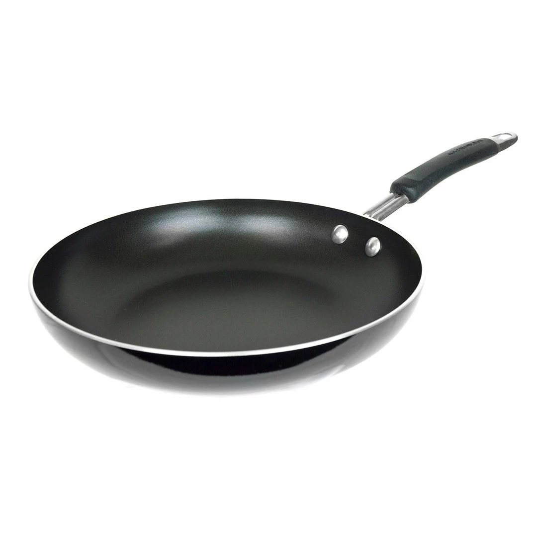 Beautiful and functional, this Rachael Ray Non-Stick skillet heats quickly and evenly, reducing hot spots that can burn your food. With a stay-cool, high-grip silicone handle, you can cook with confidence that you won’t accidentally burn yourself, and its glossy black porcelain exterior adds a stylish punch of color to your kitchen. Perfect for everyone from professional chefs to students, and everyone in between, complete your kitchen with this sleek, reliable skillet today!