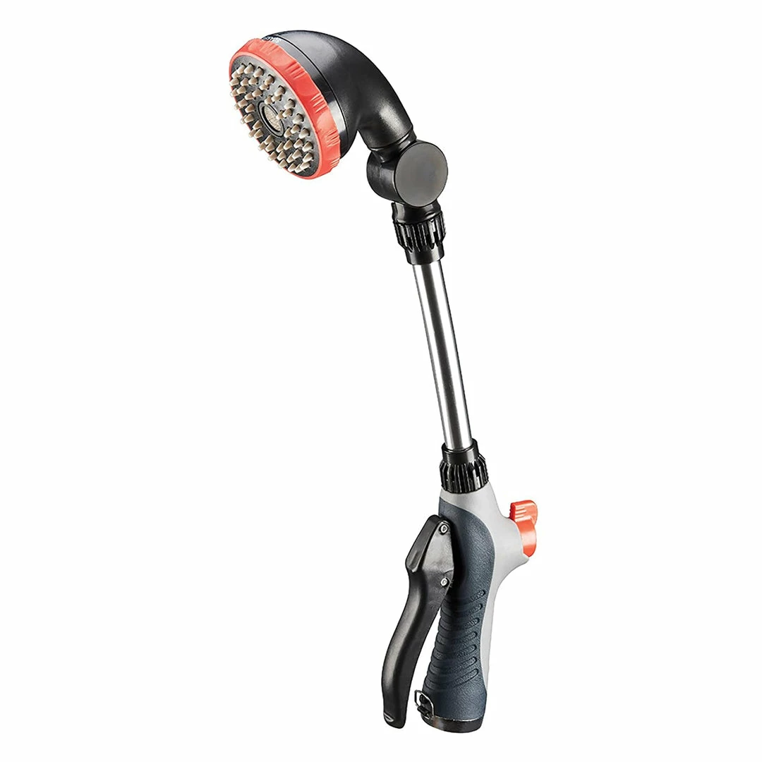 Rain Wave 15″ gentle shower head watering wand features a soft clad handle with a front trigger designed for comfort. The flow control on the ergonomically designed handle lets you easily change from low to high. The adjustable head is easy to swivel up to 180 degrees so you can put it in the exact direction you need it while watering. Self cleaning tips unclog with a swipe of your finger. Super durable Metal and ABS construction for long lasting. Front trigger designed with a continuous flow latch so you can lock the trigger in place and alleviate hand fatigue.