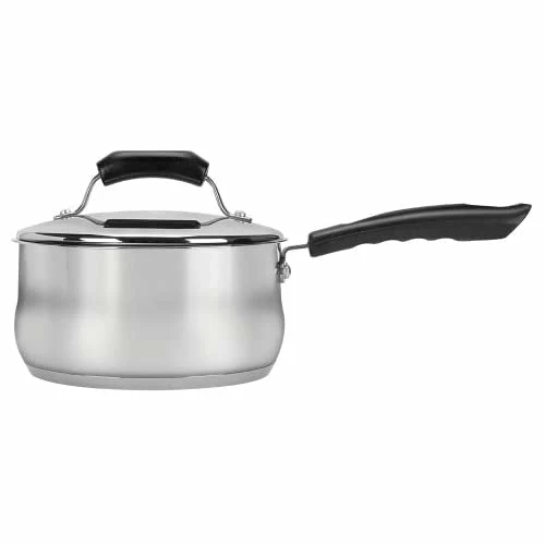 1ย Quart Covered Sauce Pan! Made from premium quality stainless steel, this saucepan is easy to clean and oven proof up to 350ยฐF. The pan also features an encapsulated bottom for even cooking and cool touch phenolic handles.