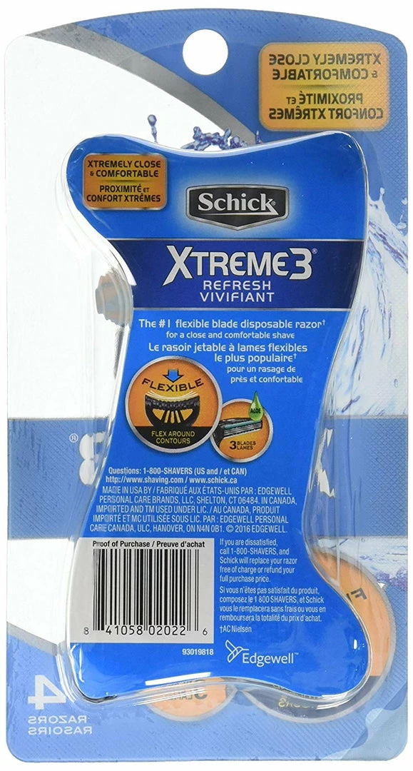 disposable razor. The Schick® Xtreme3® Refresh disposable razor has a