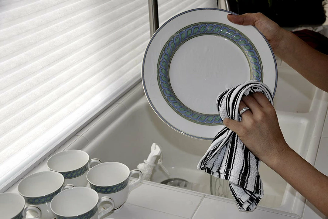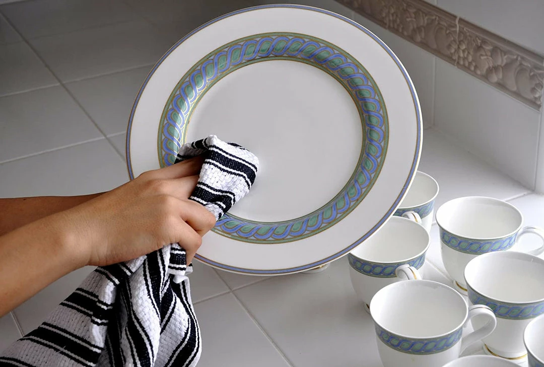Nouvelle Legende basketweave cotton towels hold dirt and debris while maintaining its high absorbency. Beautiful black and white basketweave design to complement any home or kitchen. Super soft and absorbent towels clean and dry any mess quickly and efficiently. Streak-free and scratch-free. Perfectly safe to use on your favorite silverware and glassware without leaving any damage, lint, or fuzz. Durable towels can be washed and reused hundreds of times without losing their efficacy. Use in the kitchen, bathroom, garage, workshop, and more.