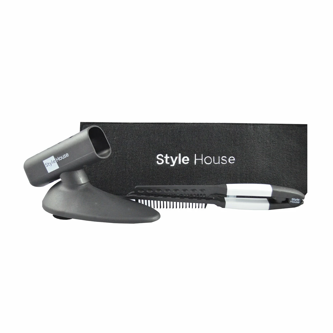 Upgrade your hair straightening experience with a Style House Flat Iron Accessory Kit! This kit includes a flat iron holder, folding styling comb, and a heat resistant case. With this kit you can keep your iron safe and accessible, hold your hair in the perfect position while ironing, and protect your iron and surfaces from heat damage!